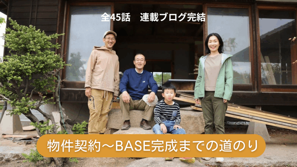 岡山市南区箕島エリアの小高い丘に佇む会員制ヨガ&暮らしの住居兼スタジオ。自然に囲まれた風景の中に「本来の自分に還る場(=BASE)」として創られた癒しと学びの空間です