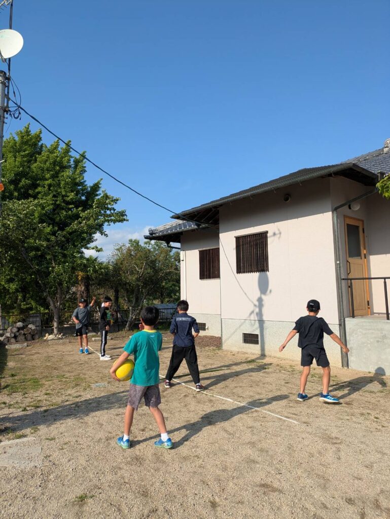 駐車場でドッジボール大会スタート!