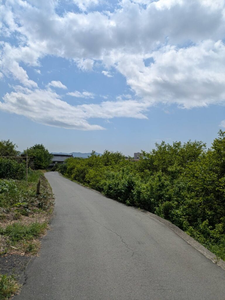 BASEから小学校へ下りる近道がまるでハイキングルート。