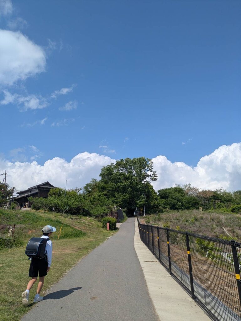 森の小道を抜けて徒歩17分で小学校へ。