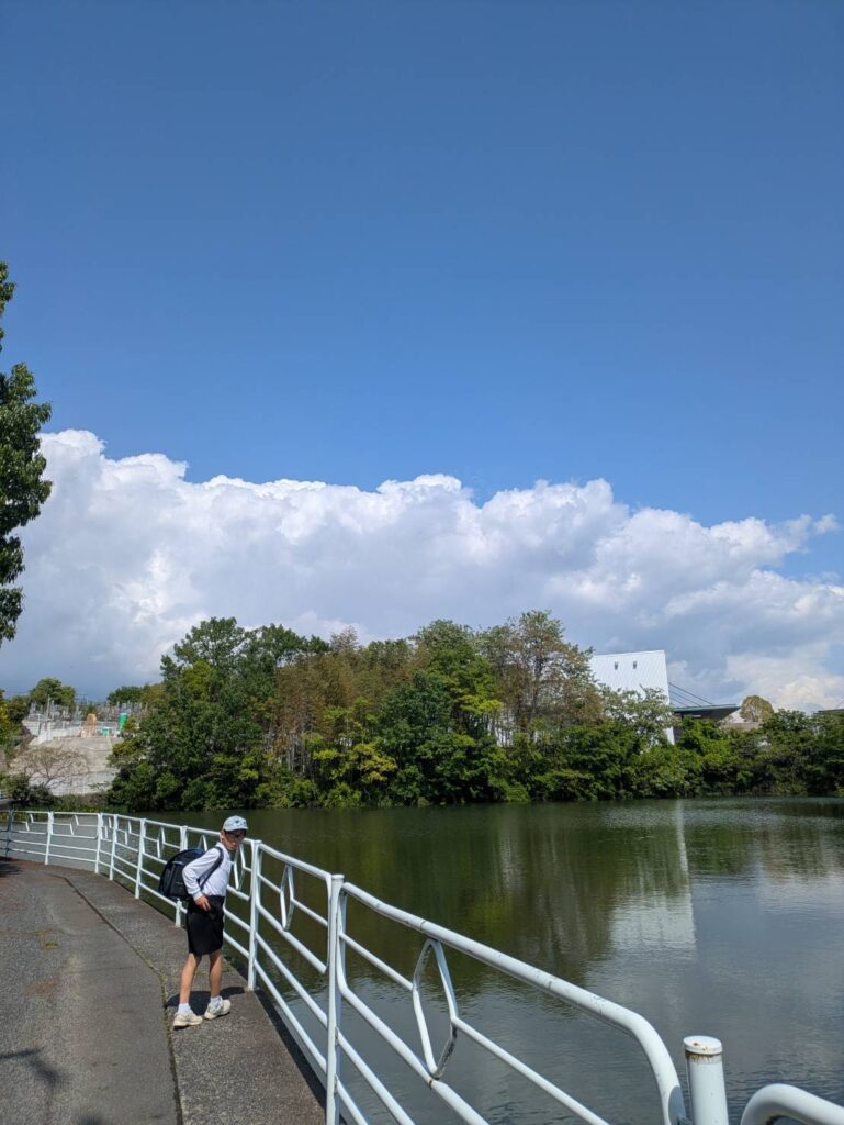 ブラックバスを探して池沿いの道へ。