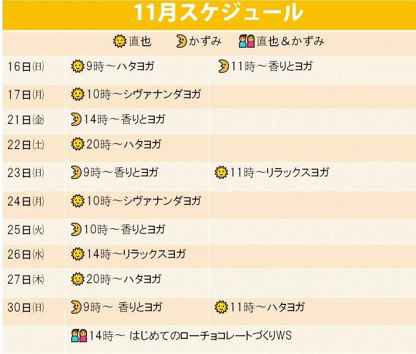 ◉ 11月16日より通常ヨガクラスSTART!